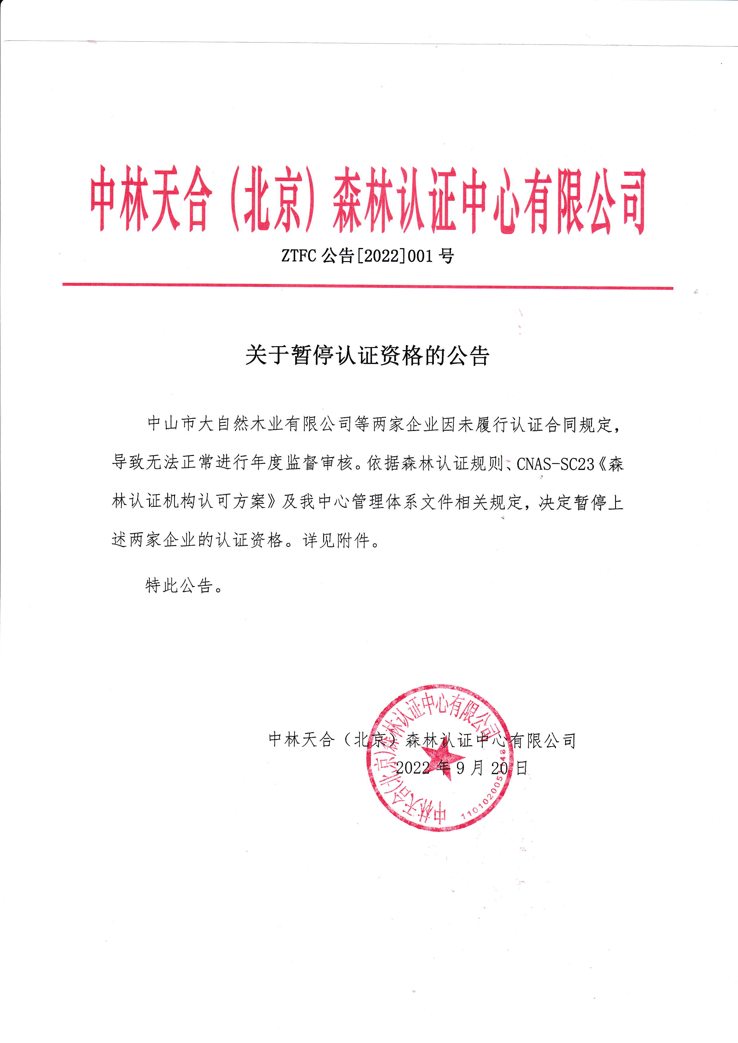 关于暂停认证资格的公告