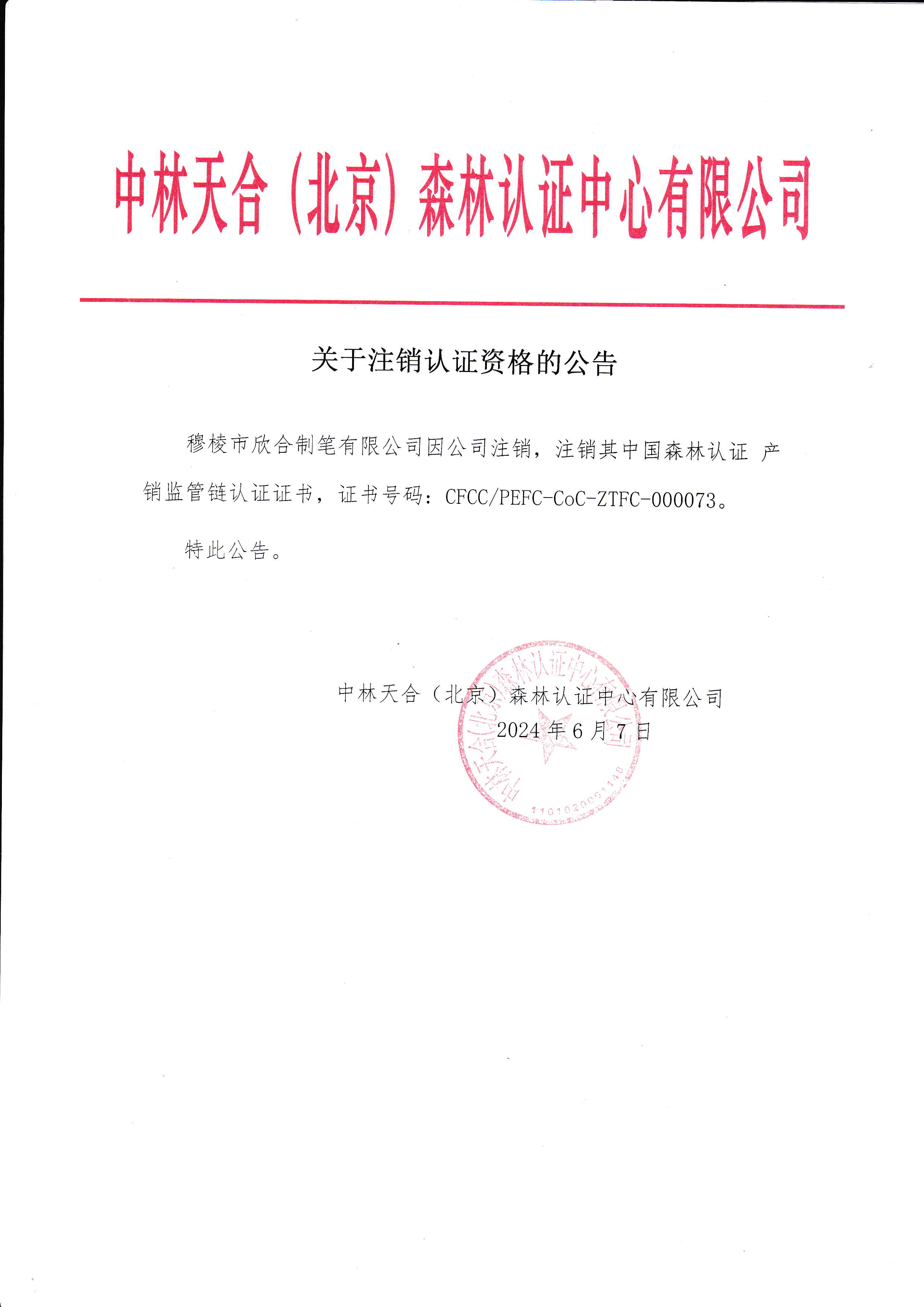 关于注销认证资格的公告